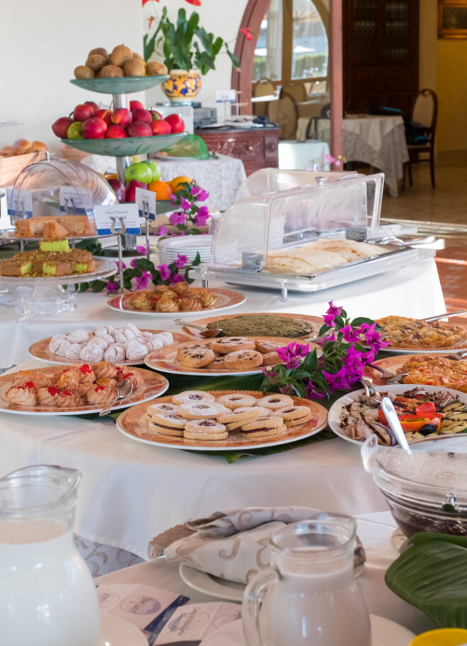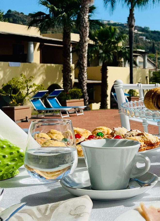 Per i più golosi non mancano dolci fatti in casa, frutta fresca, marmellate e mieli siciliani. Sono disponibili anche prodotti gluten free, per garantire una colazione gustosa e adatta a tutte le esigenze alimentari. Chi desidera un tocco extra di comfort può richiedere la colazione in camera.