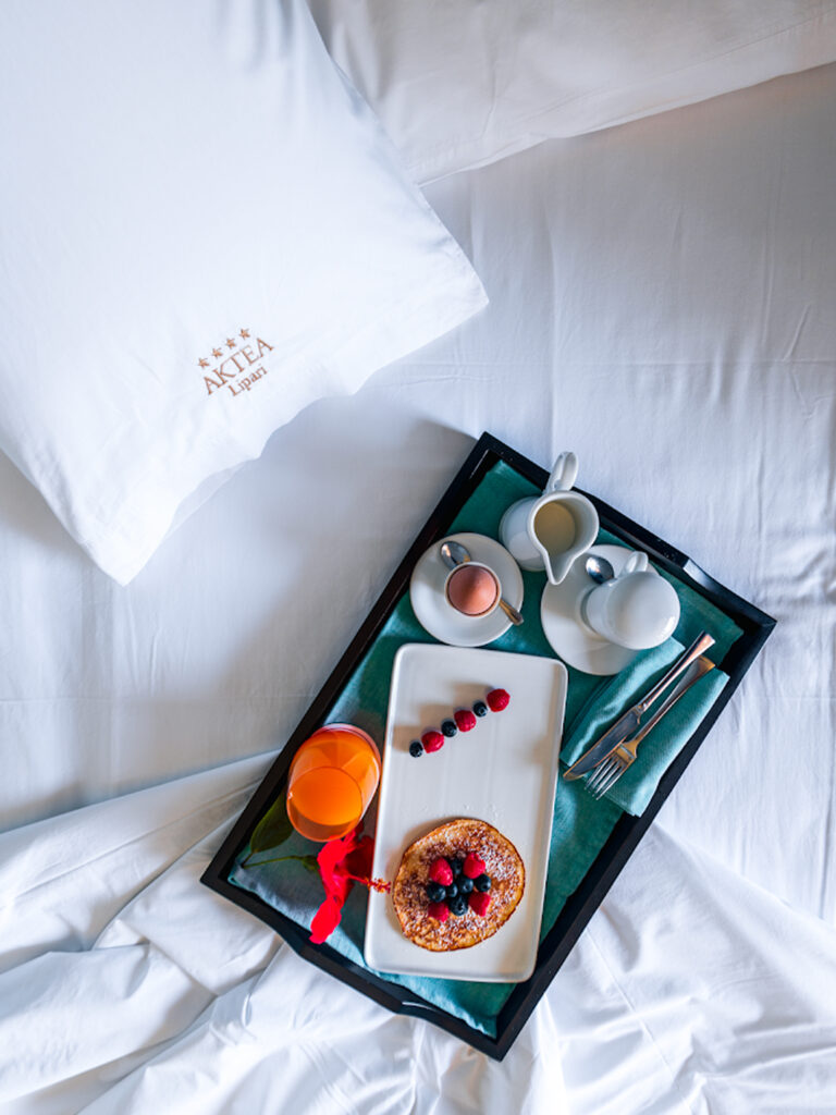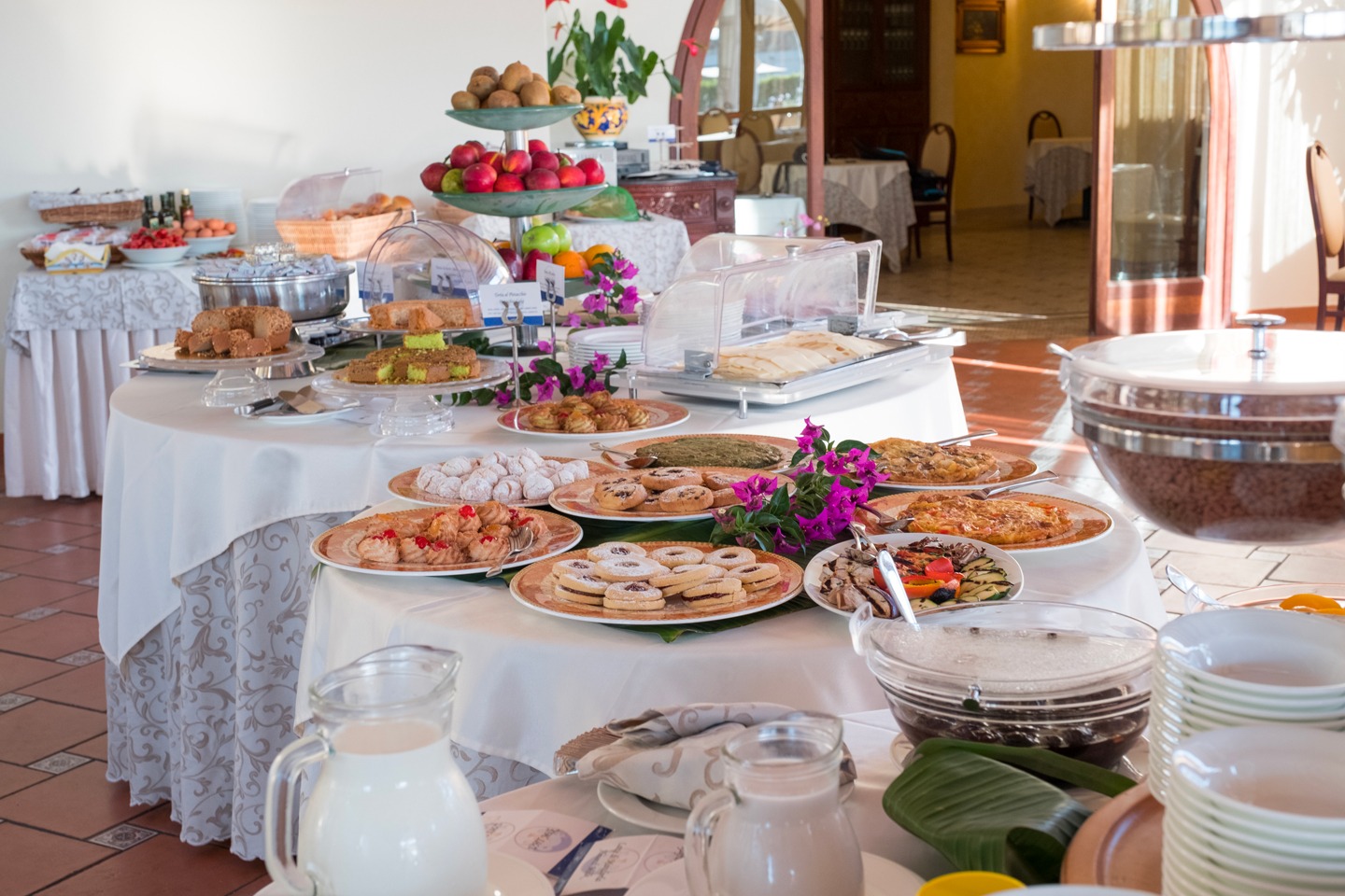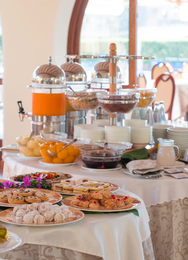 Ogni mattina all'Hotel Aktea vi aspetta un ricco buffet dolce e salato, servito nella luminosa sala colazioni: il modo migliore per iniziare la giornata con gusto e leggerezza.